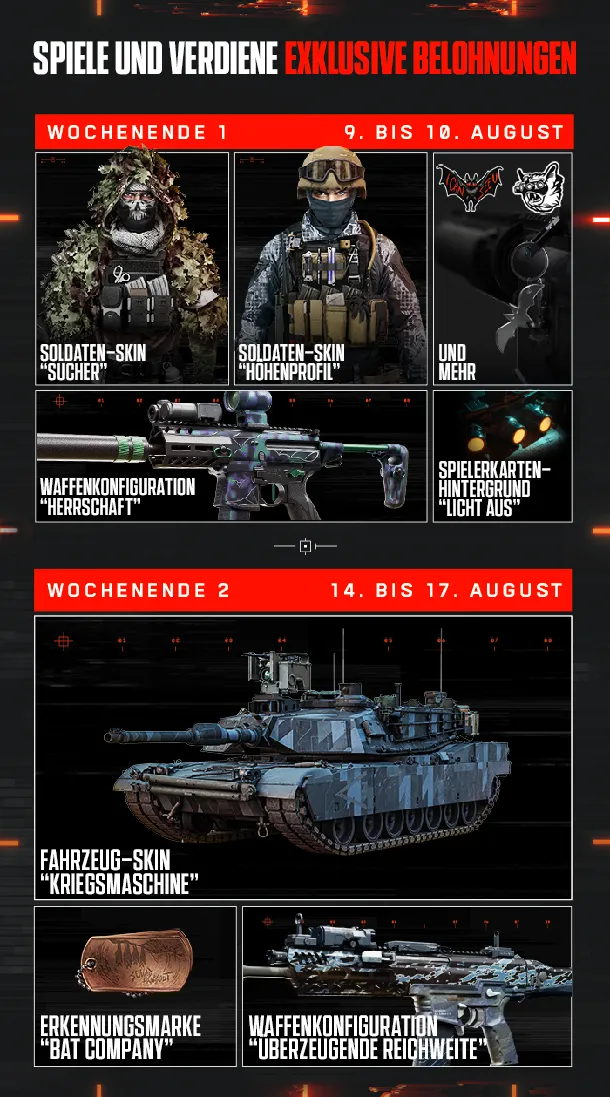 Wochenende 2 bietet eine neue Karte, mehr Modi mit Belohnungen, die eingelöst werden können, wenn das Spiel erscheint.